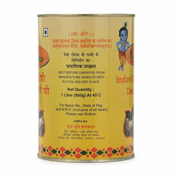 Brij Gauras Ghee a golden amrit a super food is made from 100% grazing feed cows in natural environment of Bikener ,barmer and Jaisalmer areas of Rathi ,kankeraj and cows ,it is 100% pure it is made from A2 Milk which contain A2 beta casein protein that keeps you healthy and fit ,it is super rich in anti oxidants to improve body strength, it reduce dark circle and tanning of skin, it strengthen your hairs, it improve brain functioning and memory ,it boost metabolism ,it is a natural powerhouse of energy, it is a good source of Omega 3and 9 with vitamins ADE&K ,it is lactose free, It is natural in colour and fragrance. No preservatives, No additional flavor, fragrance essence, No pesticides no additives are used in this products.