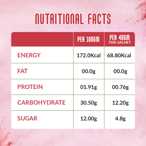 | Nutrient Content | Energy: 172.0 Kcal, Fat: 0.0g, Protein: 1.91g , Carbohydrates: 30.50g, Sugar:12.00g, |