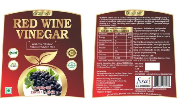 Ogreeny Red Wine Vinegar Non Alcoholic, 350 ml (Pack Of 1)